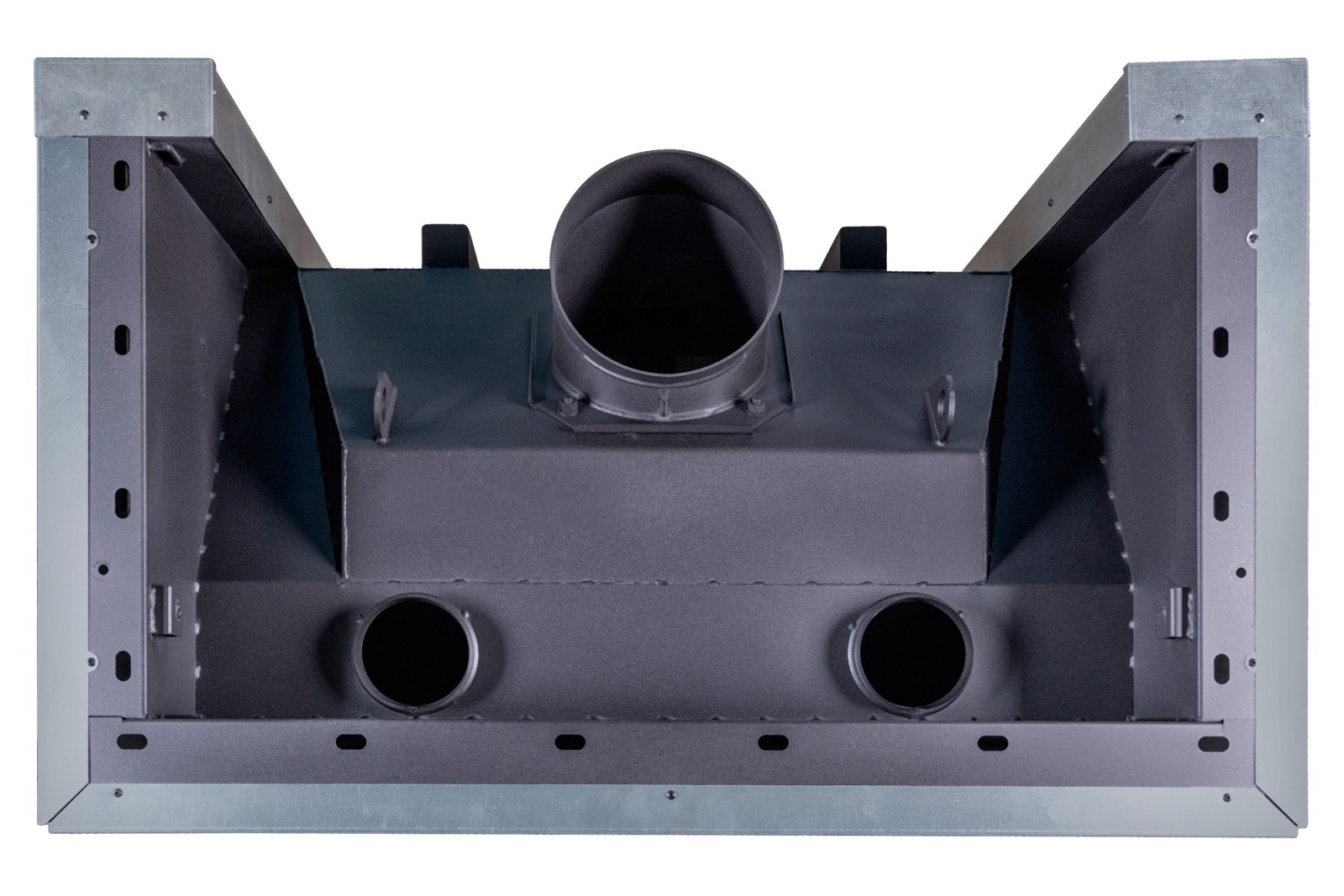 Система забора воздуха извне, имеет два встроенных патрубка диаметром 125 мм для подключения забора воздуха на горение из соседнего помещения, улицы, подвала, и повышает надежность работы топки.
