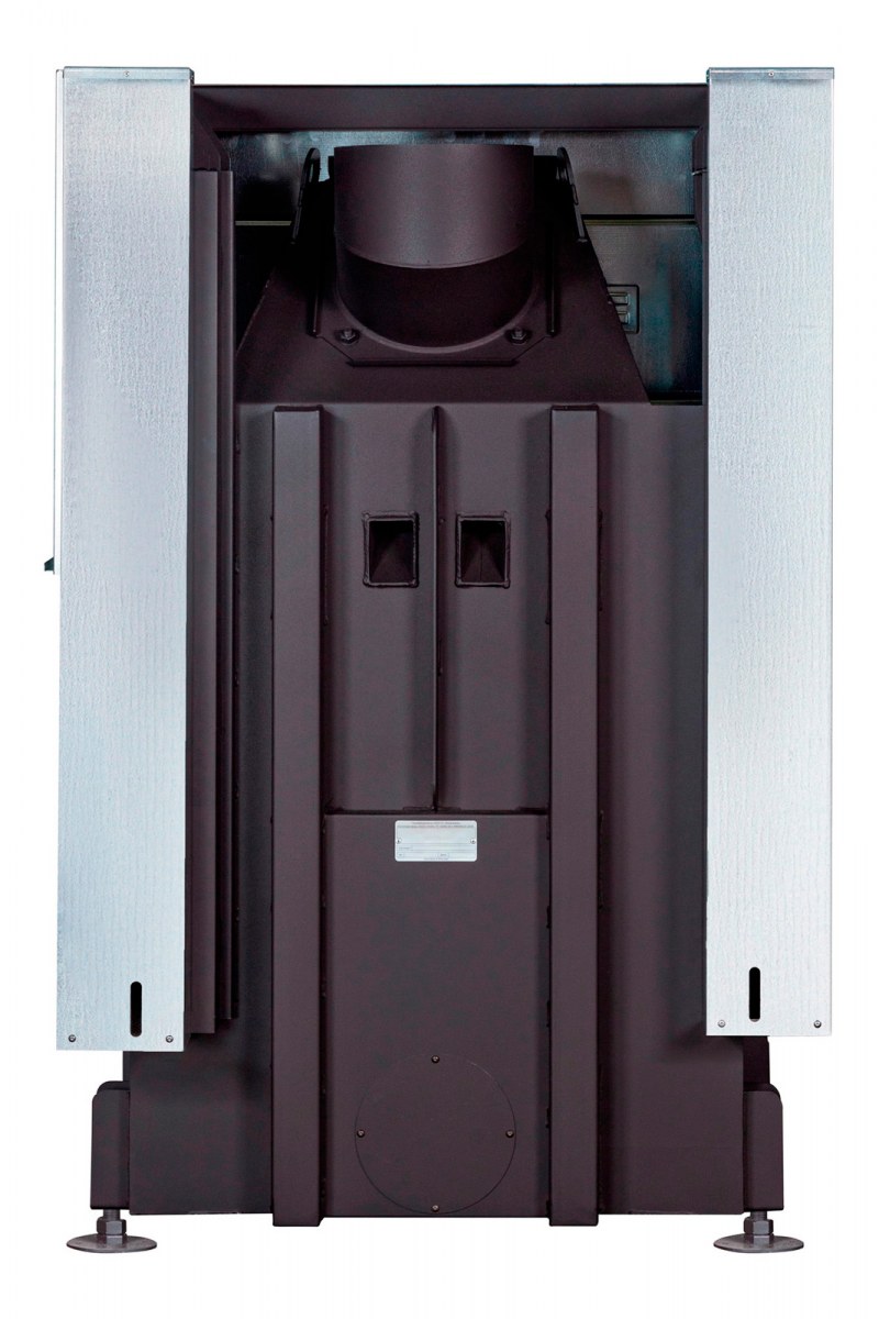 Ребра жесткости по всему корпусу топки и встроенные в дымосборник тепловые каналы позволяют снимать больше тепла и отдавать его в помещение путем конвекции.