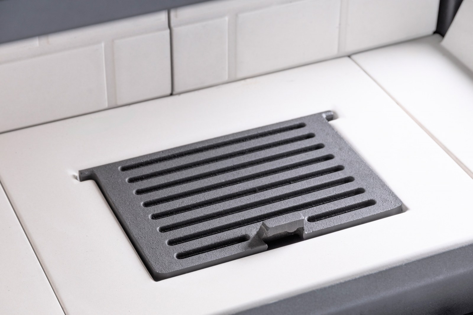 Под чугунной колосниковой решеткой в днище топки, находится большой зольный ящик, который удобно вынимается.