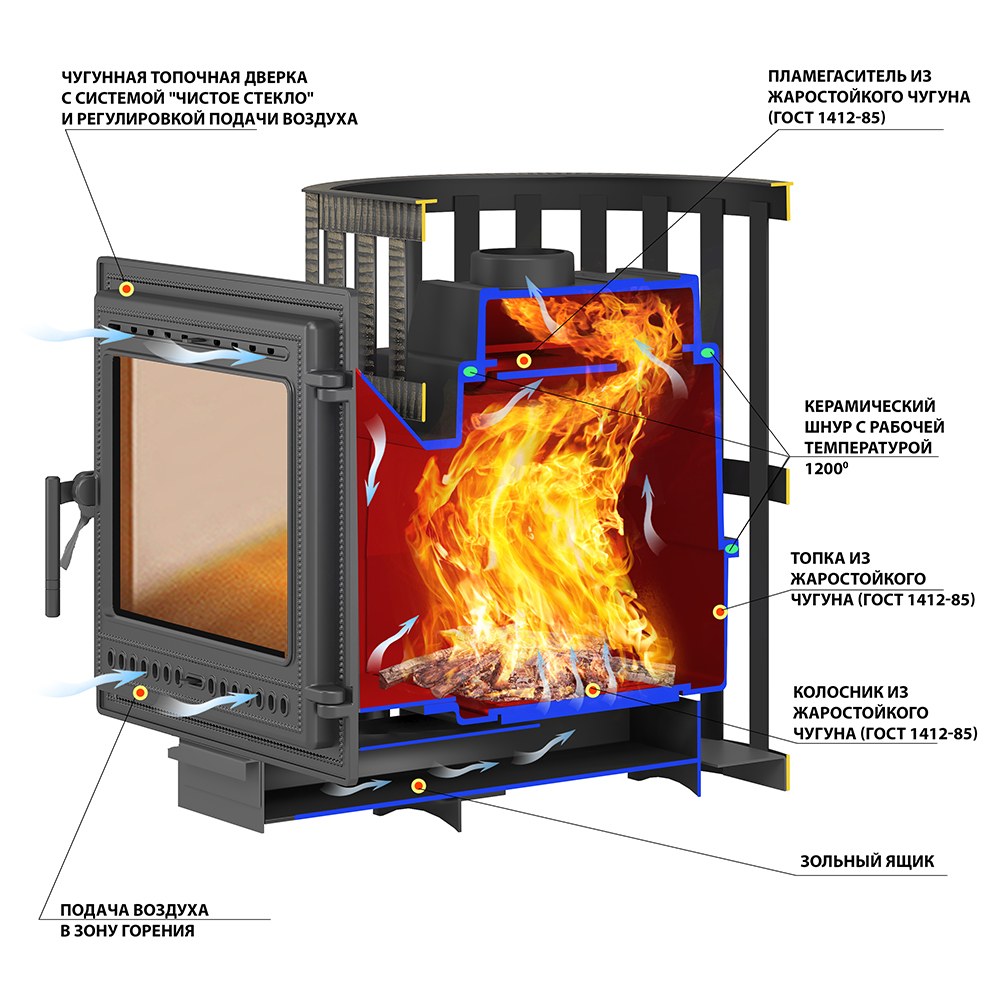Материал топки: жаростойкий чугун (ГОСТ 1412-85).