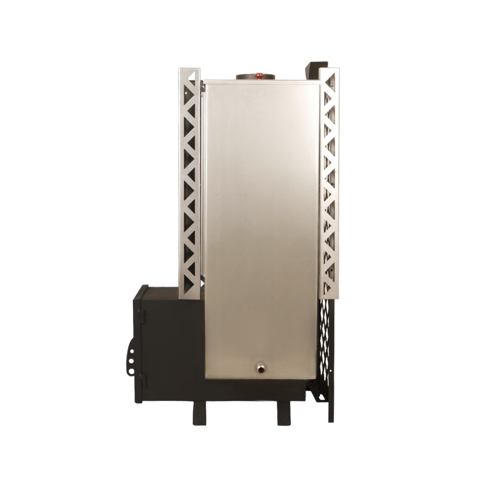 Особенностью данной модели является закрытая каменка, которая обеспечивает равномерное распределение тепла и создает мелкодисперсный пар. Глубокая невентилируемая каменка-труба из стали 09Г2С толщиной 4 мм прогревается открытым пламенем для максимального нагрева камней.