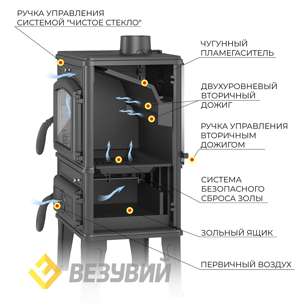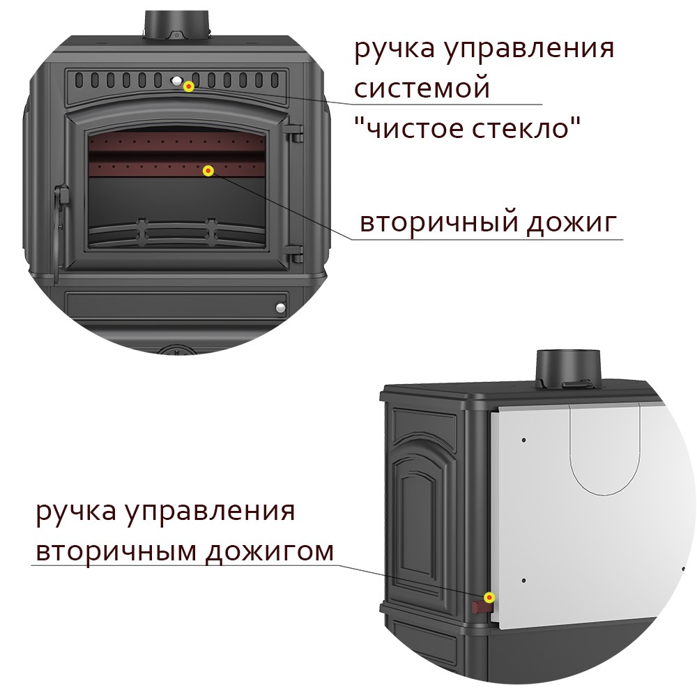 чугунная печь-камин с двойными стенками;