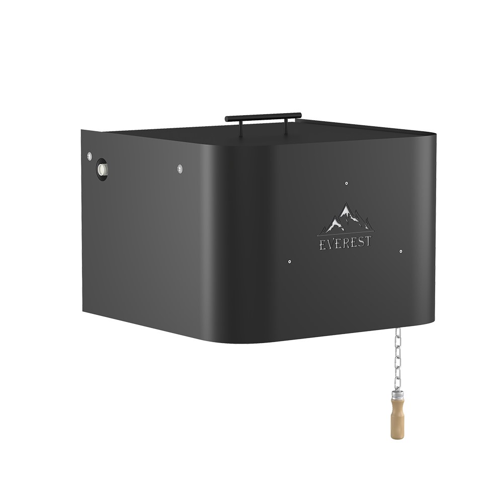 Обливное устройство ЭВЕРЕСТ представляет собой бак из нержавеющей стали, автоматически наполняемый водой. Количество воды в баке регулируется с помощью клапана подачи воды. Максимальный объём воды в баке – 15 литров.Бак обливного устройства устанавливается на высоте 2-2,2 метра. Вода для облива после парилки подаётся с помощью рукоятки на цепи. Широкое основание бака с большим количеством мелких отверстий обеспечивает оптимальный по размеру и интенсивности поток воды.Равномерная подача большого объёма воды обеспечена за счёт трех выпускных клапанов, одновременно открывающихся при потягивании рукоятки вниз.